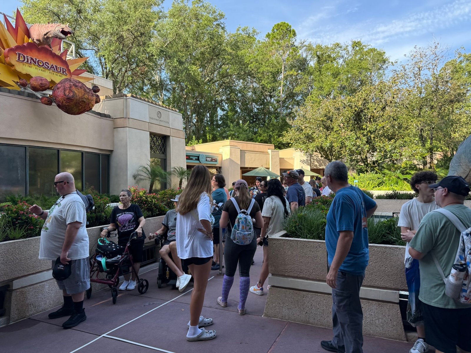 Something interesting happened today outside at Dinosaur in Disney’s Animal Kingdom. Guests were wrapped around the building this morning, lining up for the newest Dinosaur merchandise drop that officially released yesterday.
